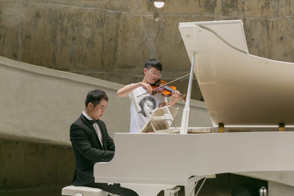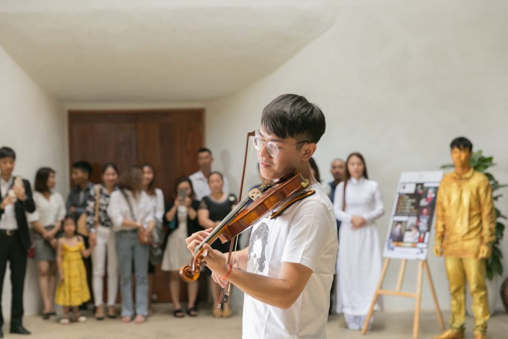 Buổi triễn lãm êm đêm khi có sự góp mặt của những nghệ sĩ violin và piano, tiếng đàn du dương trong không gian cổ.