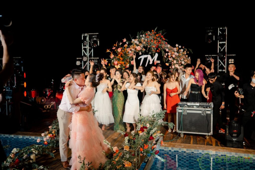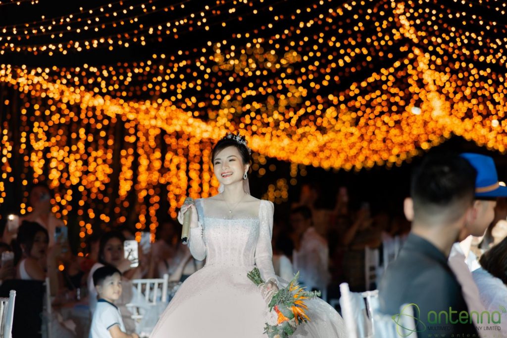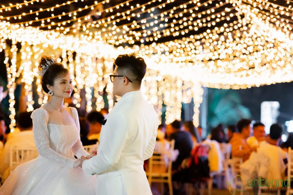 Cảm xúc sẽ càng thăng hoa, happy hơn khi thực hiện đám cưới ngoài trời với kiểu decor theo cách riêng của mình, âm thanh và ánh sáng rực rỡ. “Hôm nay mình thật sự là công chúa trong truyện cổ tích”.