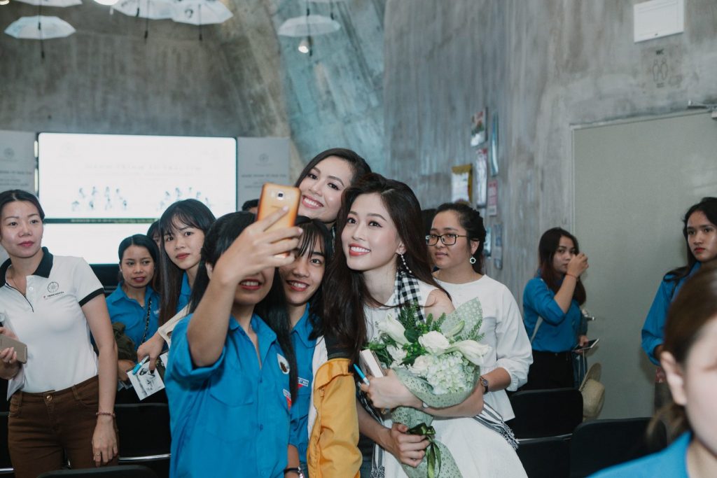 Các Á hậu chụp hình cùng các bạn sinh viên