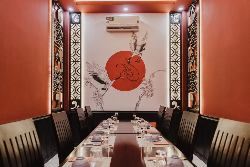 Nhà hàng Lạc Dương – Ẩm thực dê được thiết kế theo phong cách kiến trúc Đông Dương gây ấn tượng với người ngắm bởi không khí lãng mạn, trang trọng, gần gũi. không gian lãng mạn phù hợp với các bữa tiệc thân mật, hèn hò hay các buổi tiệc sinh nhật, party nhóm,…