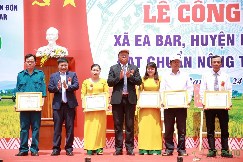UBND tỉnh đã trao Bằng công nhận đạt chuẩn NTM, Cờ thi đua và tiền thưởng 1 tỷ đồng để xây dựng các công trình phúc lợi xã hội trên địa bàn xã; UBND huyện Buôn Đôn tặng Giấy khen cho 5 tập thể, 10 cá nhân và 17 gia đình; UBND xã Ea Bar tặng Giấy khen cho 15 tâp thể, 16 cá nhân, 21 gia đình có thành tích xuất sắc trong thực hiện chương trình mục tiêu quốc gia NTM trên địa bàn xã giai đoạn 2011 – 2020.